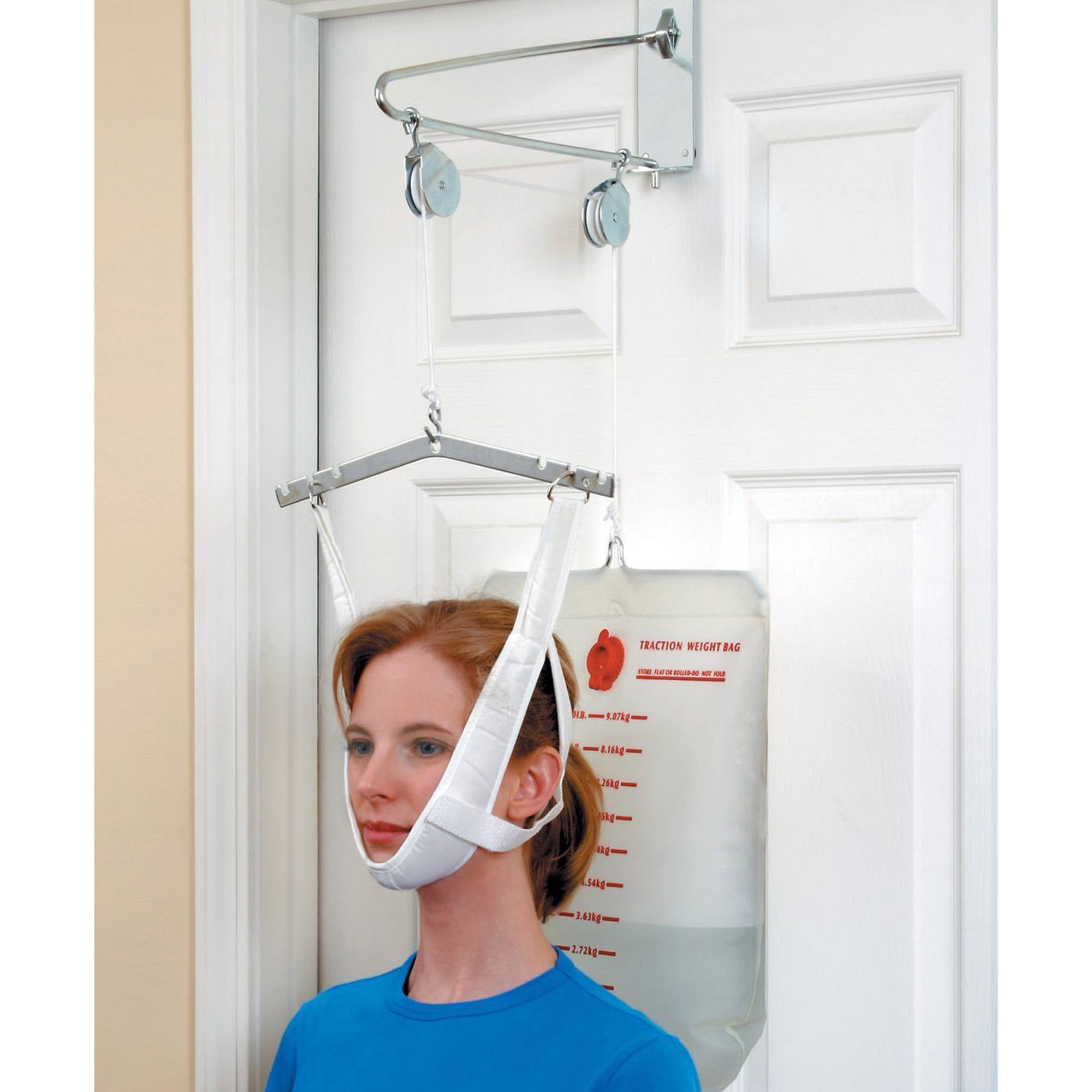 Amazon.com: OTC Over Door Cervical Traction Kit, Neck Disk ... from images-na.ssl-images-amazon.com Cervical neck traction devices treat various causes and types of neck pain, tightness, and tension by stretching the spinal vertebrae, using force or tension to the best home cervical traction devices will effectively relieve neck pain and stiffness, decompressing the spine through over the door traction. They require some assembly because you have to place them over the back of a door. The sturdy metal bracket fastens over any door, and the weight bag is calibrated from 2 lbs. As opposed to conventional over the door traction devices that require you to since rigidly against a door for extended periods of time, this model allows you to experience neck traction while watching tv or working at the computer. You just need to adjust the level of traction by squeezing the hand air. It's easy to operate and convenient to use. Otc over door cervical traction kit 11. Even if you use over the door neck traction devices at home, it never hurts to have something that you can wear at other times.